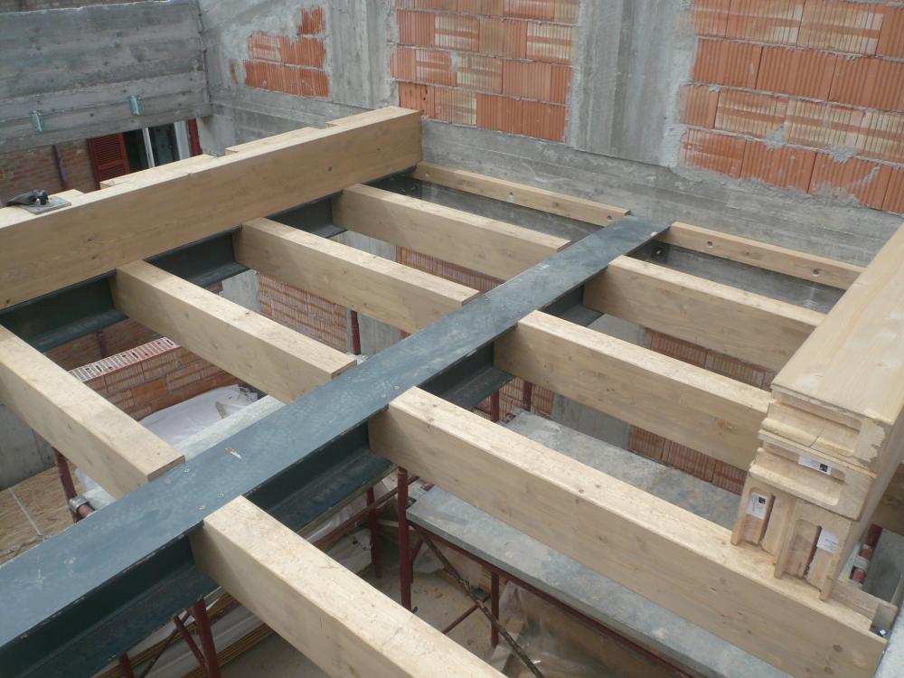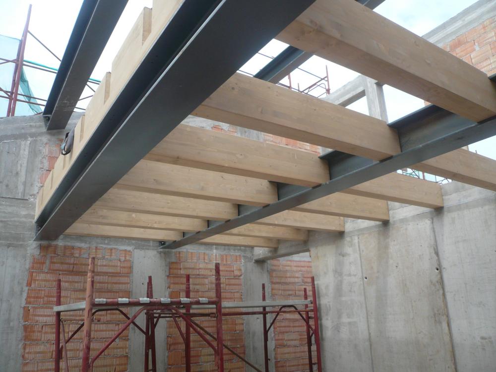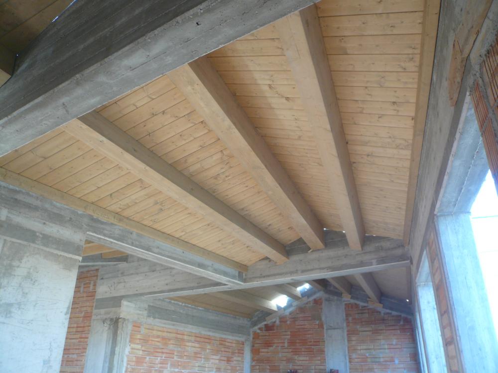 Nuova fabbricato residenziale con struttura intelaiata in cemento armato e solai con travi in legno lamellare ed acciaio.